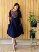 Effortless elegance with this one-piece A-line kurti, a perfect blend of modern silhouette and traditional charm. Made from breathable cotton fabric, it features a flattering A-line cut that drapes gracefully. The highlight is the intricately designed multicolor Ajrakh-style patchwork on the yoke and sleeves, giving it a vibrant ethnic touch. With one side pockets and versatile colors.