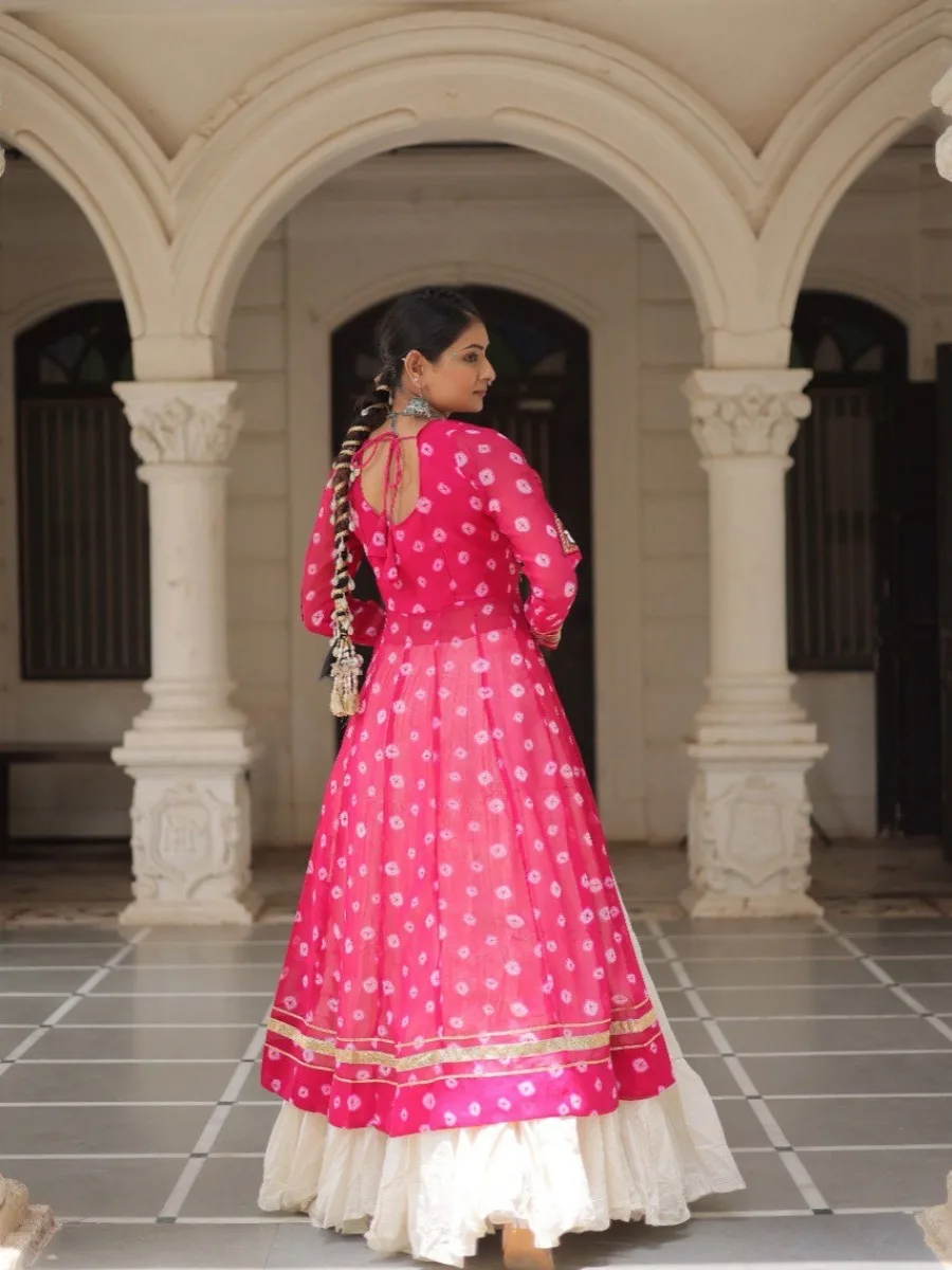 • Fabric & Work: Faux Georgette with Bandhani Print & Kutchi Patchwork