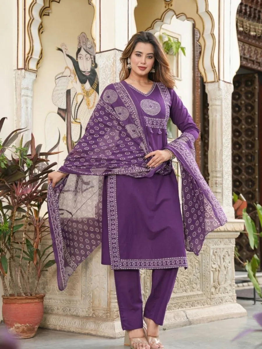 Premium cotton salwar suit set, crafted for comfort and grace. The set includes a beautifully designed straight kurta with intricate print details, matching bottoms, and a lightweight printed dupatta that completes the traditional yet stylish look.